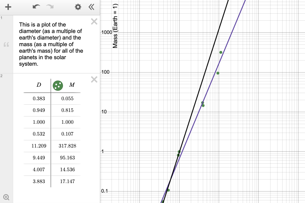 Visualize relationships more easily with this graph that compares the diameter of each planet to its mass.