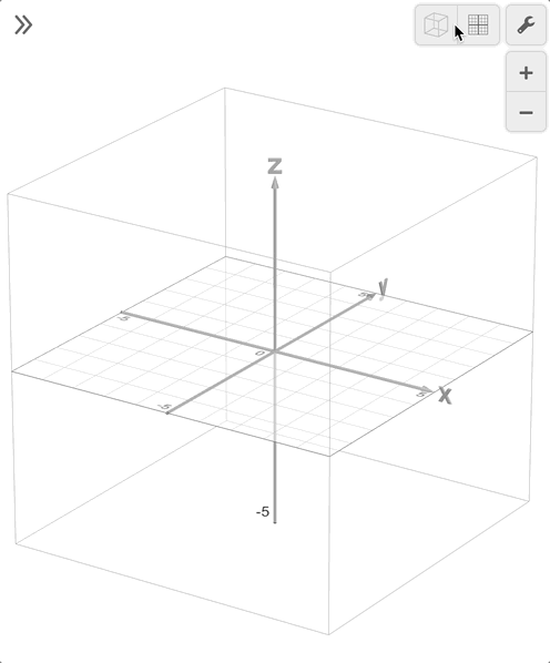 When working in 2D, your view is restricted to the \(XY\) plane. While the default view in our 3D calculator is a cube containing the \(x\), \(y\), and \(z\) axes, you can view the same 2D plane by clicking the XY Orientation button, which will animate the cube turning to snap to the \(XY\) plane. To get back to the 3D view, you can click the Default Orientation button.