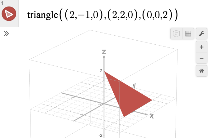 It is often convenient to define a surface by points rather than an explicit equation. In 2D, this is accomplished with the 'polygon' function, and in 3D, you can use the 'triangle' function. Note that while 'polygon' in 2D can take any number of points, 'triangle' in 3D can only accept 3 points as inputs.