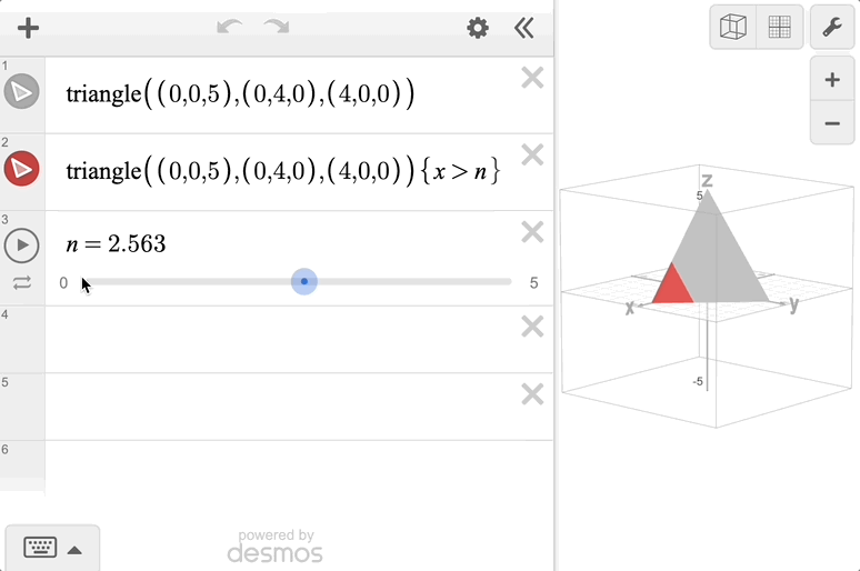 The Desmos 3D Calculator allows you to explore points, functions, and surfaces with an interface that will be familiar to users of our 2D Graphing Calculator. As you start exploring, you will encounter the same expression list for typing your equations and many familiar settings. However, you’ll also discover some new options and extensions on previous features.