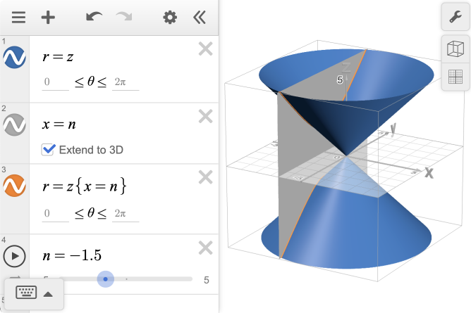 In Desmos 3D, sliders can be used to help visualize different slices of conic sections.