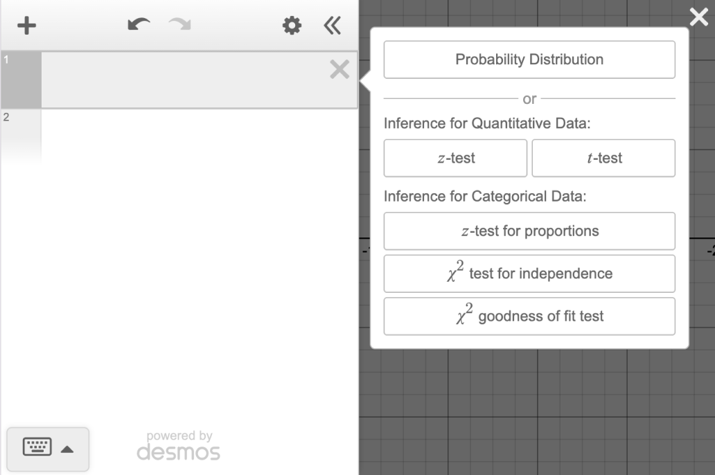 Ready to explore your quantitative or categorical data? Add a probability distribution or run an inference test from the Inference menu with just a few clicks.