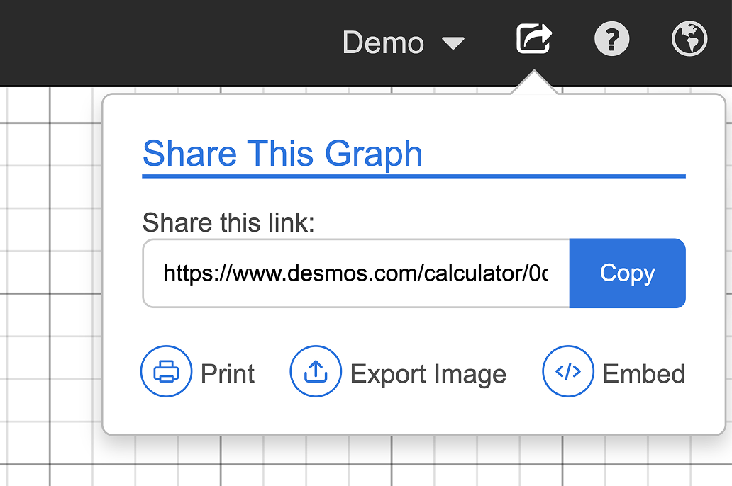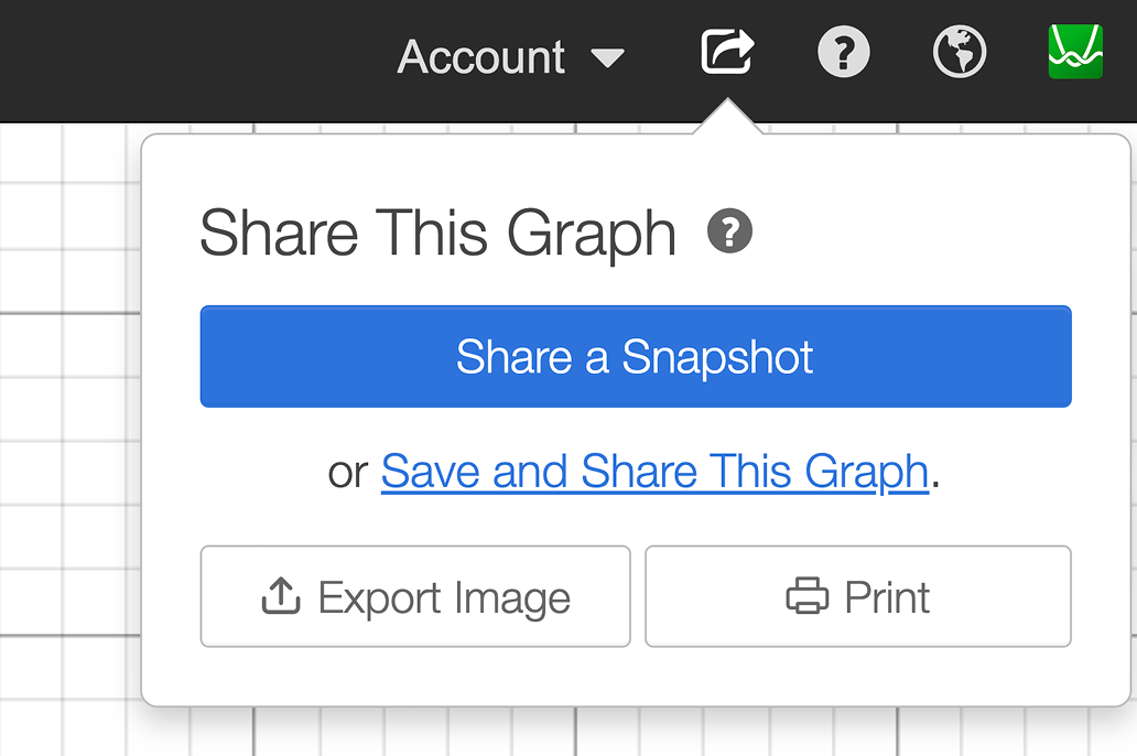 If you just want to send a link to your graph without saving it to your account, click Share a Snapshot or press CTRL + SHIFT + S (Windows) or CMD + SHIFT + S (Mac).