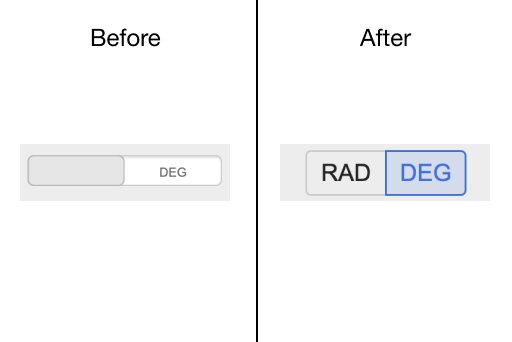 The degrees / radians toggle in the scientific calculator has higher contrast and keyboard navigability.