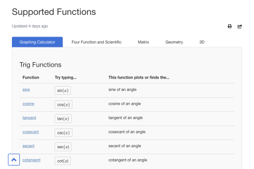We updated our supported functions article! Find examples of functions to use across each of our tools. Have a question or suggestion for improvements to this page? Reach out to us at support@desmos.com