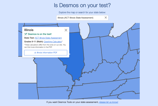 State test calculators for Illinois were added to desmos.com/testing/illinois and desmos.com/practice.