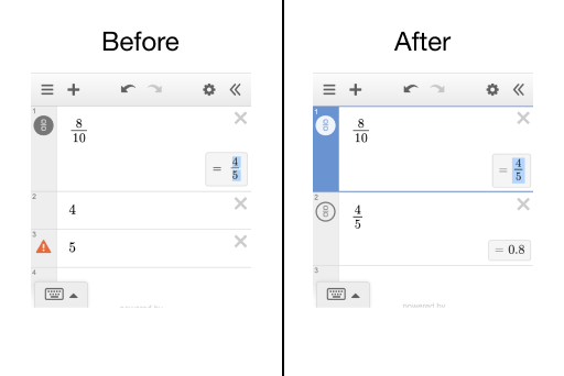 We fixed a bug so now you can copy evaluations and paste them in a new expression line without losing any formatting (including with a keyboard).