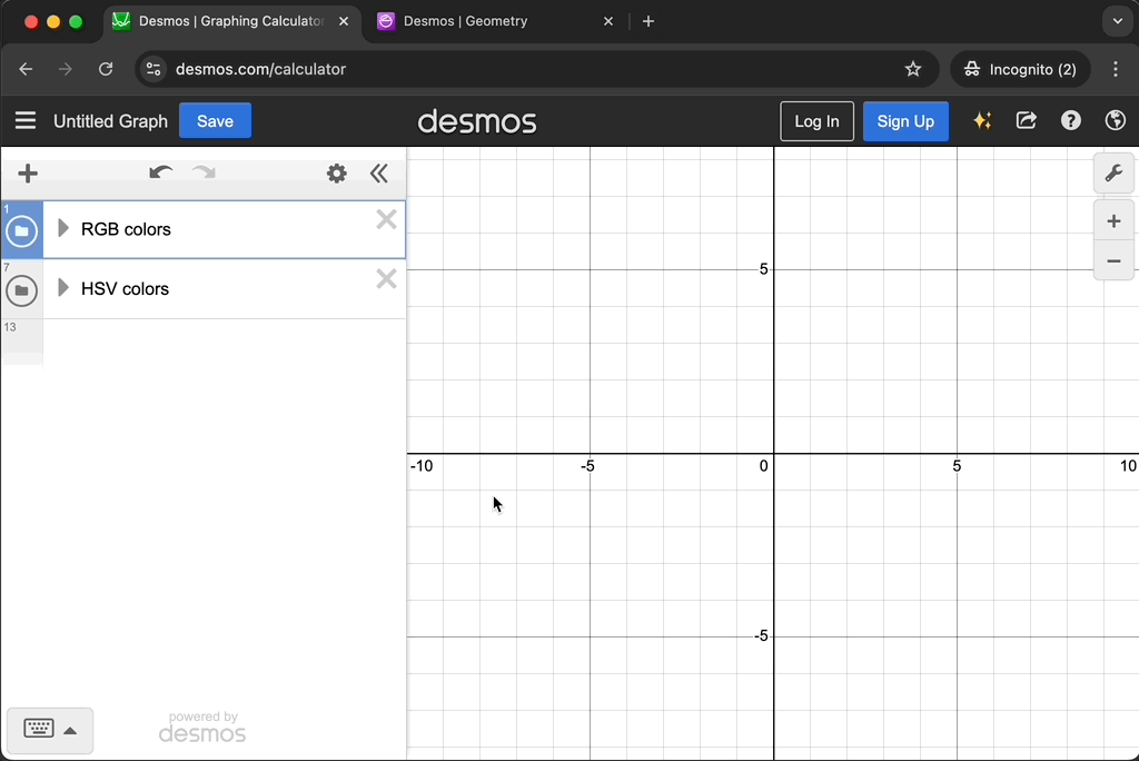 Say hello to oklab, oklch, and okhsv! These new color functions join rgb and hsv in the Graphing, Geometry, and 3D Calculators and can be used to create more consistent and predictable colors. Learn more in the updated Custom Colors article.
