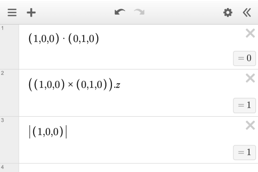 Add more dimension to your work in the 2D graphing calculator with new 3D capabilities. Try performing operations like the dot product of two 3D points to find a scalar value directly within your 2D graphs.
