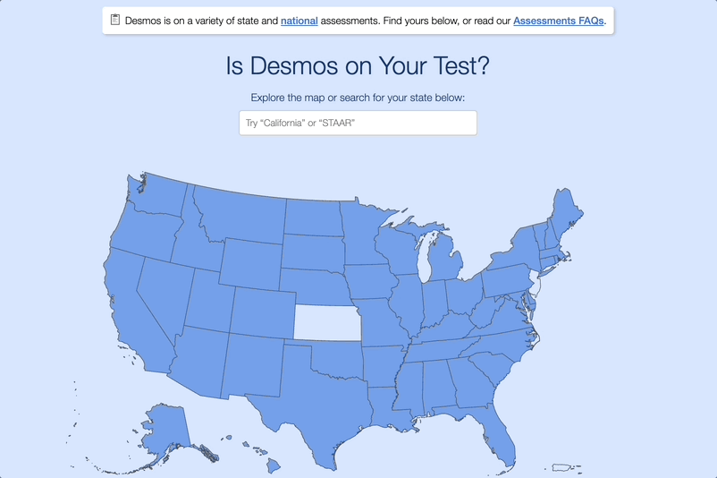 Desmos calculators appear on a variety of state, national, and international assessments. We've updated our testing information for the start of the school year.