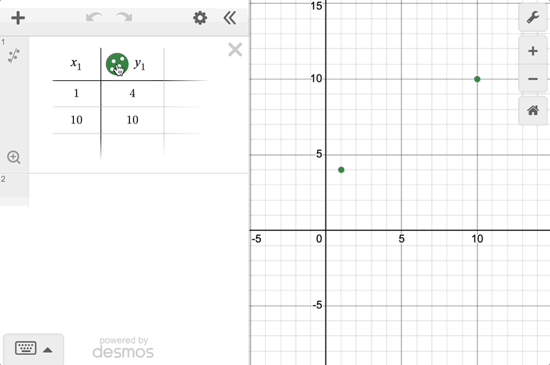 When creating a table in Desmos, points can be connected by long pressing the icon next to the dependent column header. Choose from three different styles of lines.