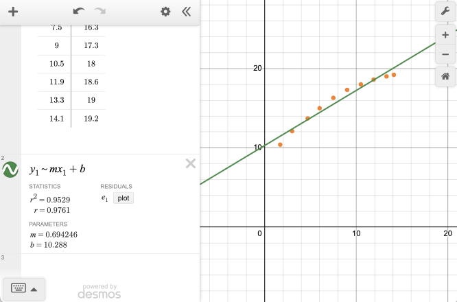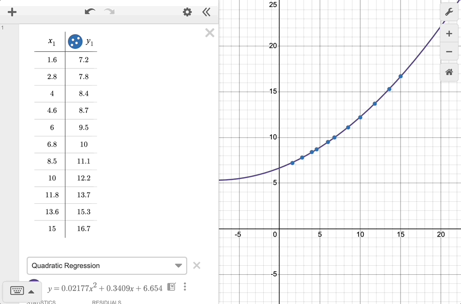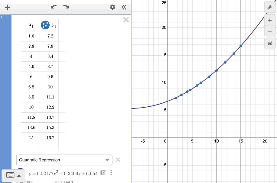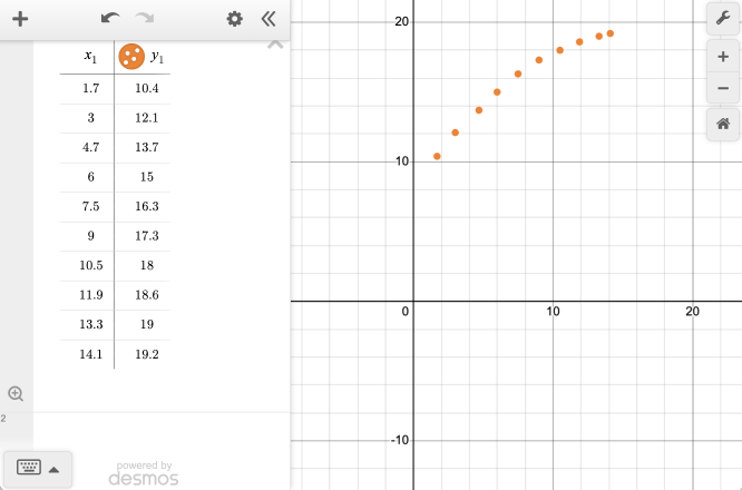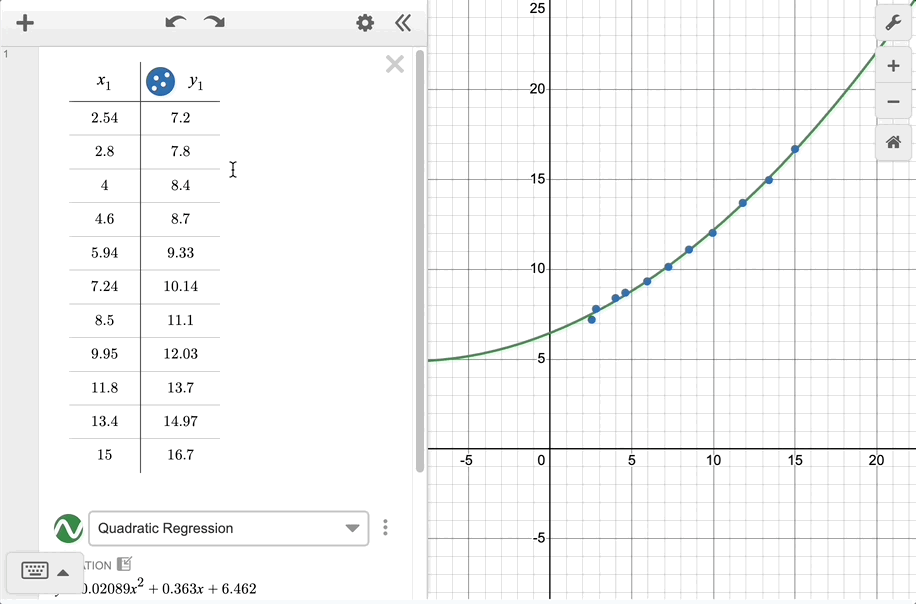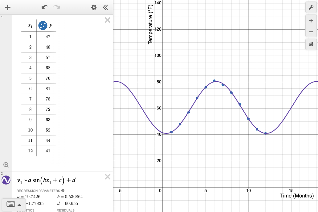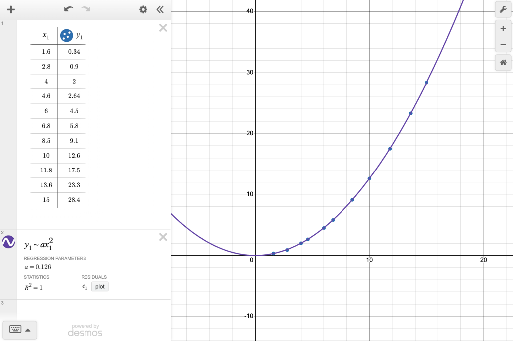 To get more information about how Desmos does non-linear regressions and for some tips on how to best find a regression model, see our article on Non-Linear Regressions.